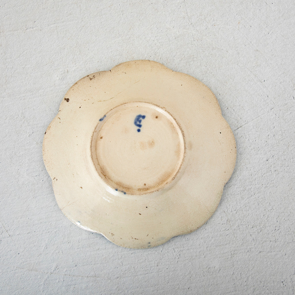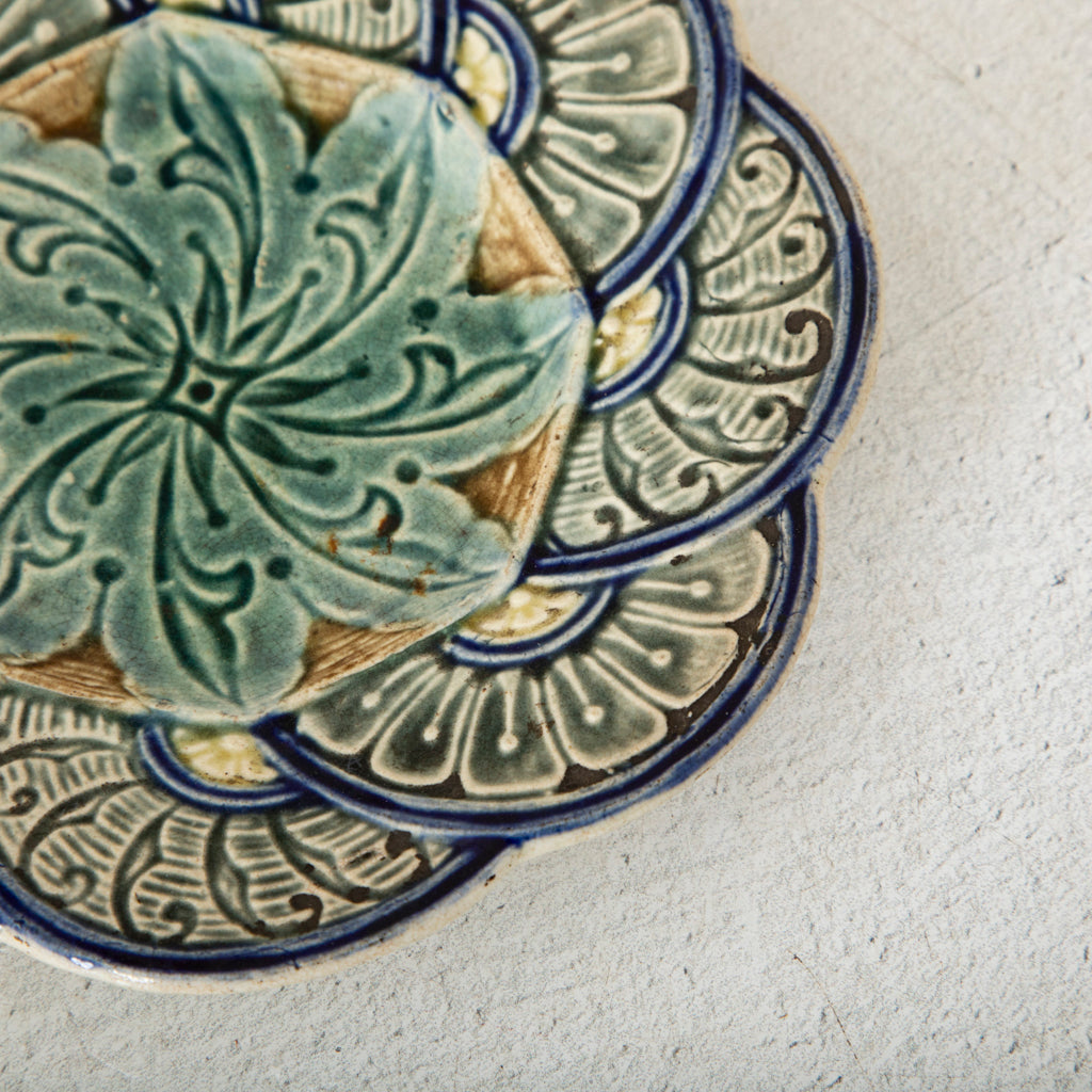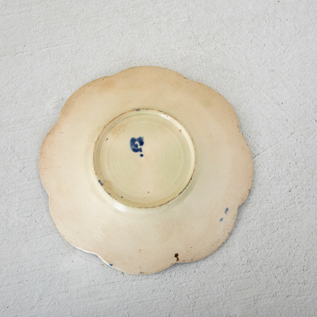 Majolica plate with scalloped border. Two available. Sold separately. 7" Diameter