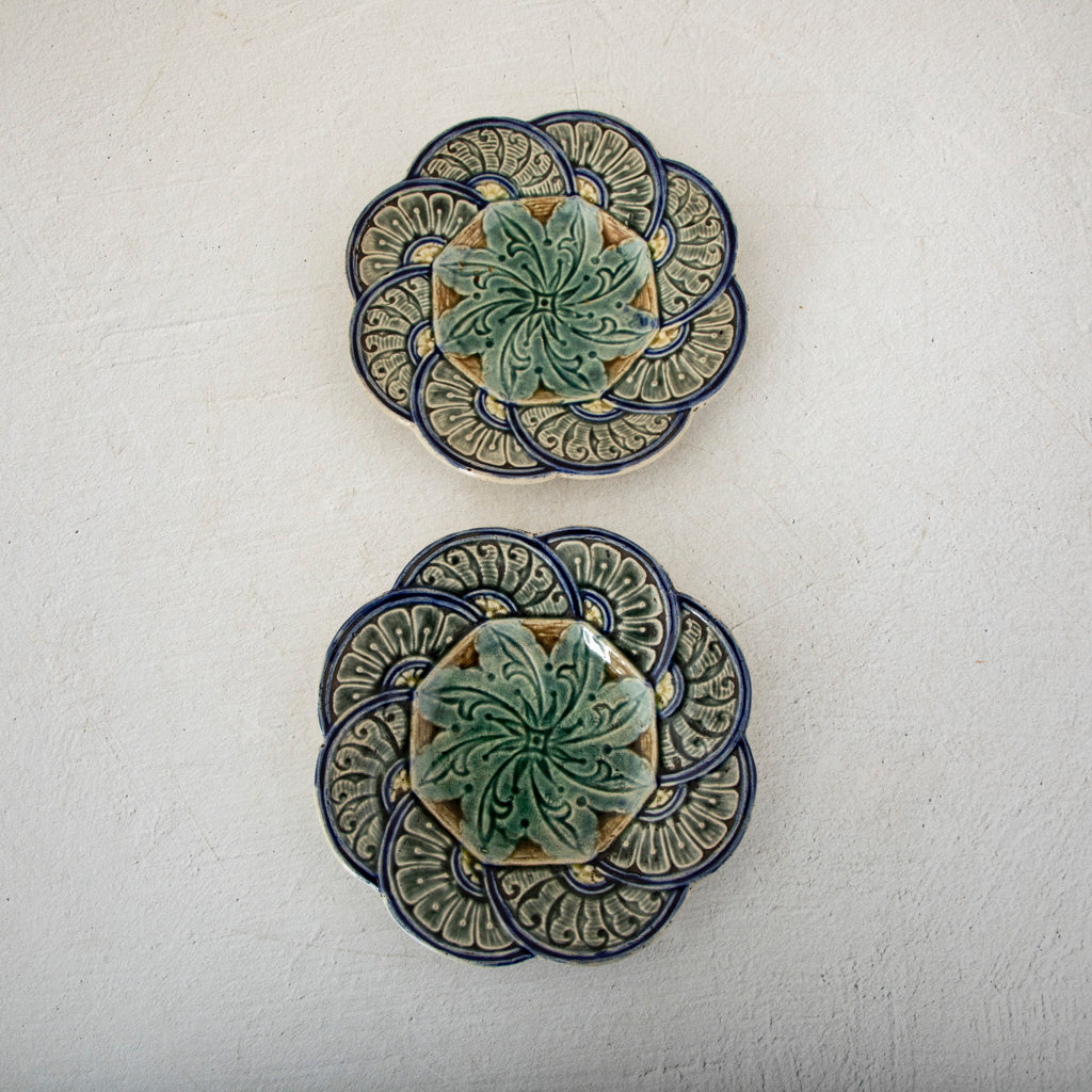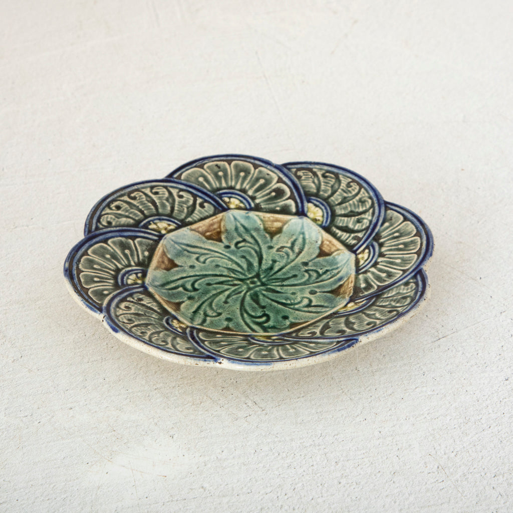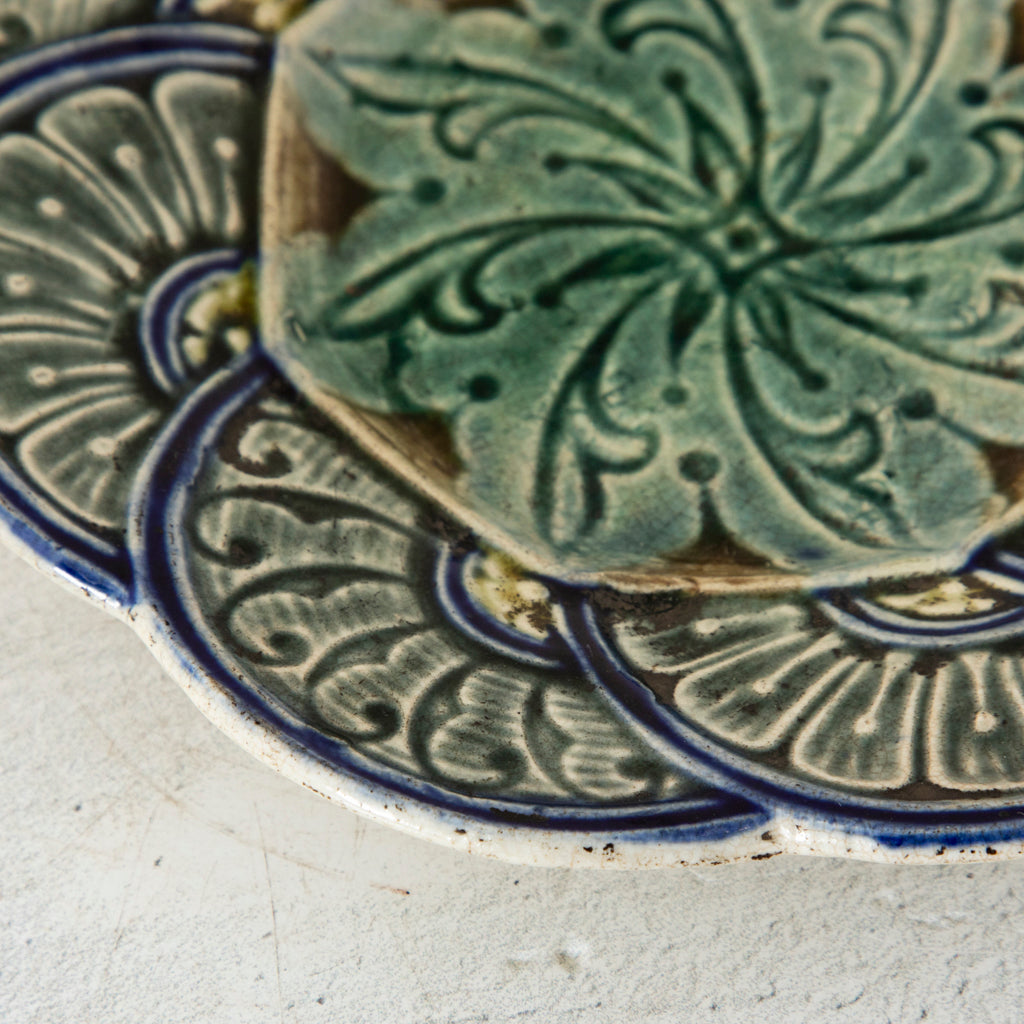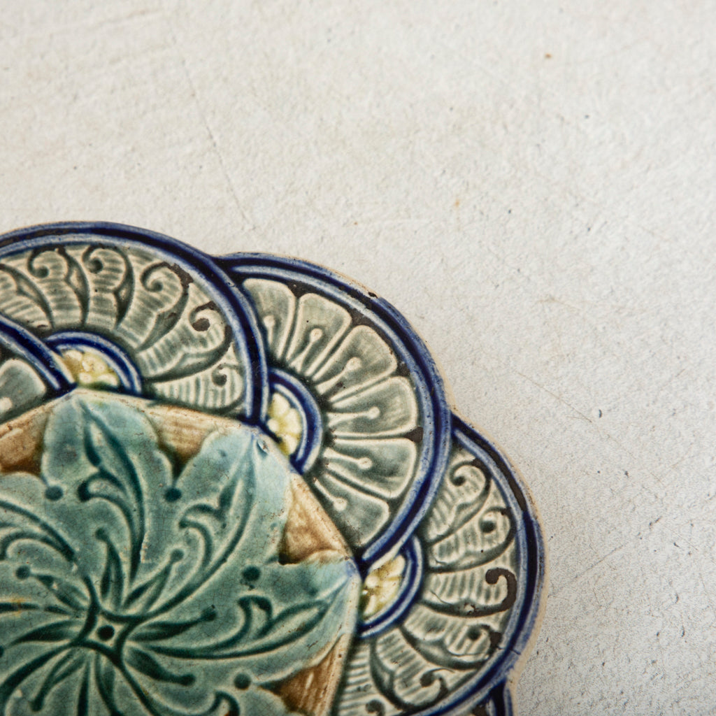 Majolica plate with scalloped border. Two available. Sold separately. 7" Diameter