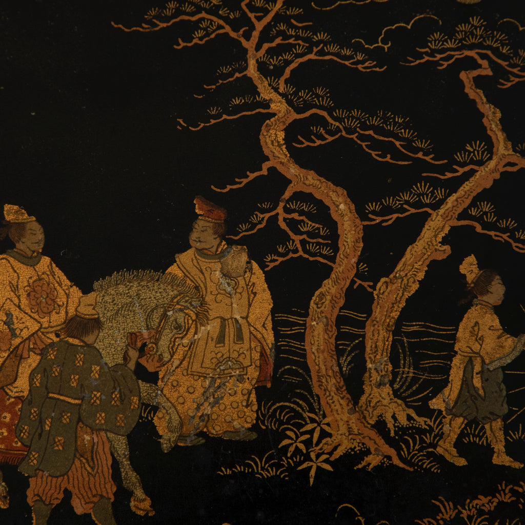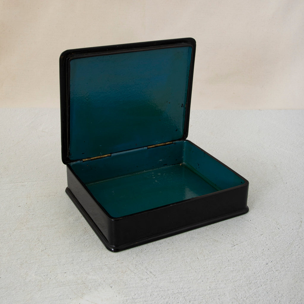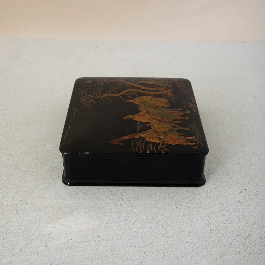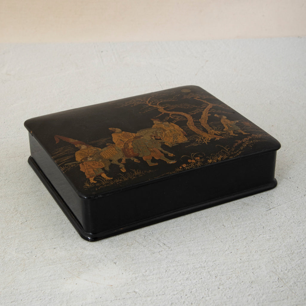Nineteenth century Napoleon III period papier mache chinoiserie box with hinged lid, c. 1860. 1.75" H X 7" W X 6" D