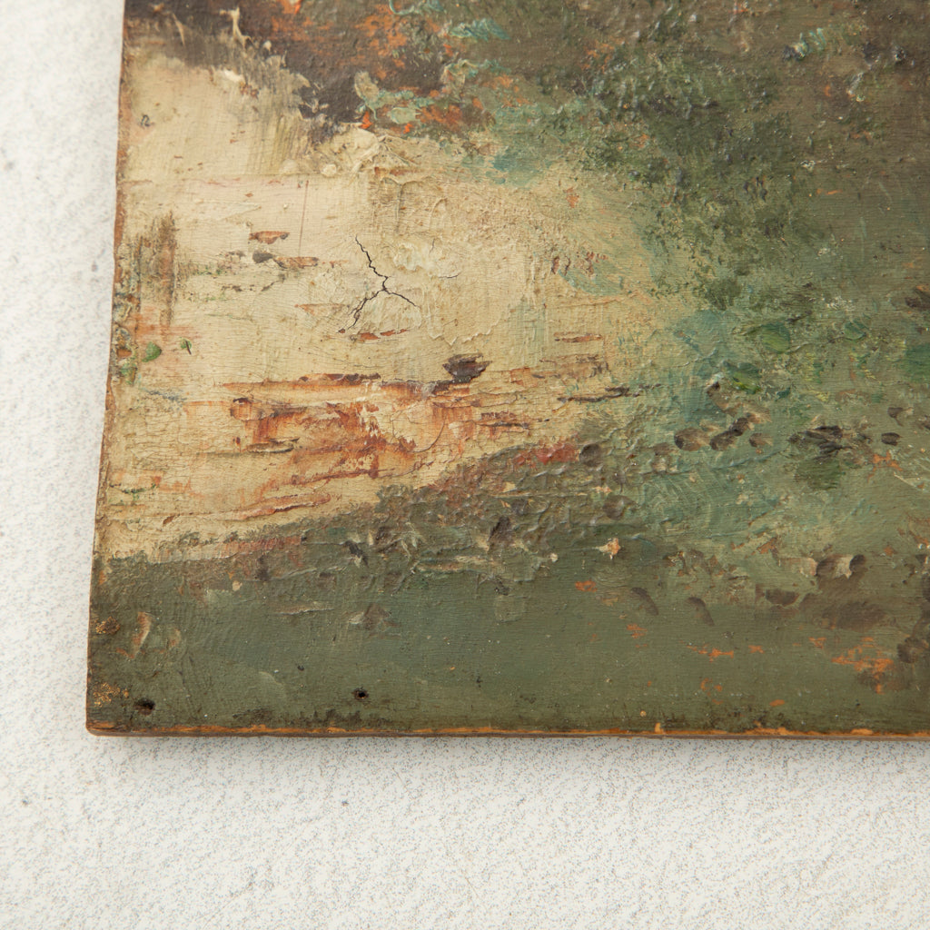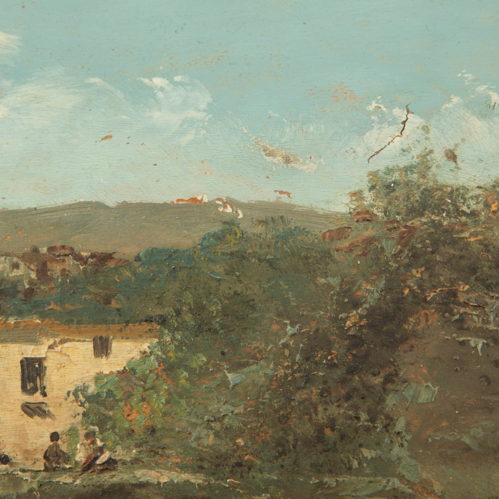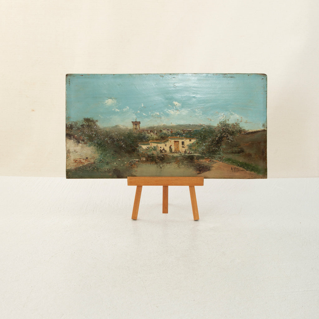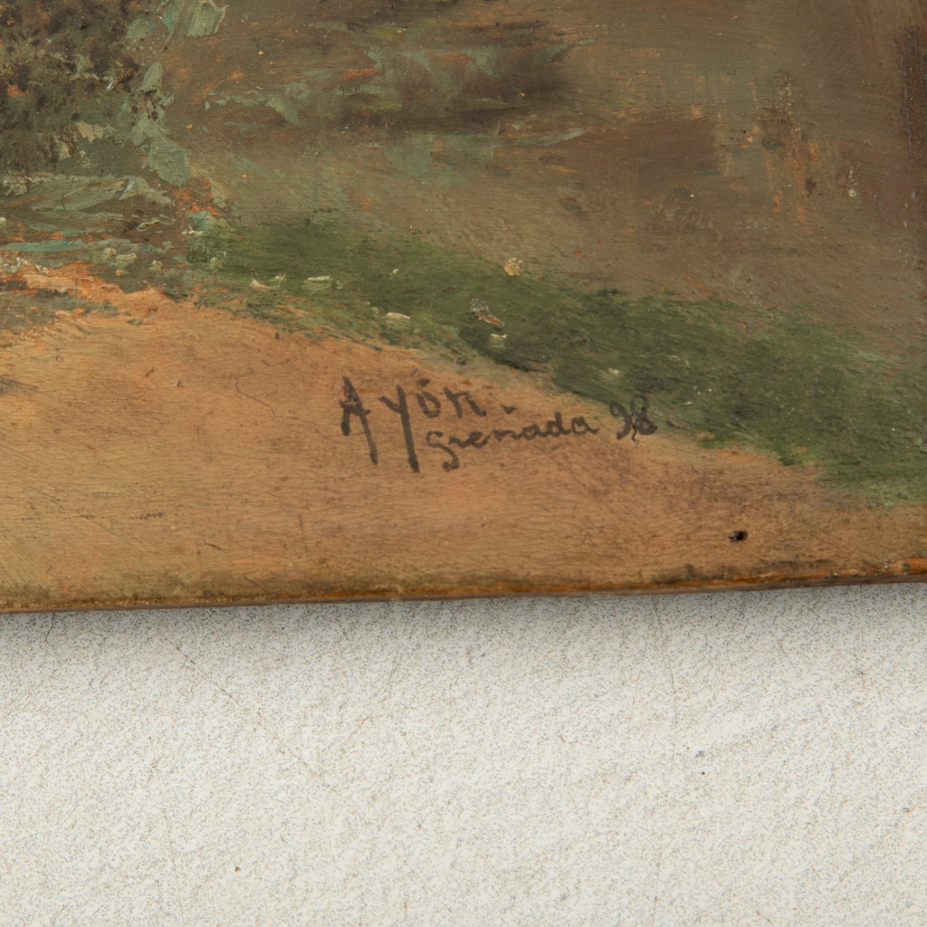 Nineteenth century small oil on panel. Landscape scene. Signed Ayon Grenada '98. 6.75" H X 12.75" W