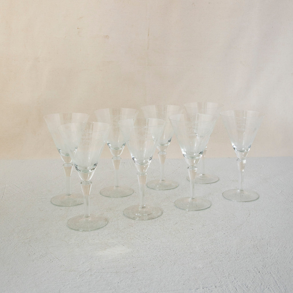 Set of eight crystal champagne coupes. 6" H X 3.25" Diameter