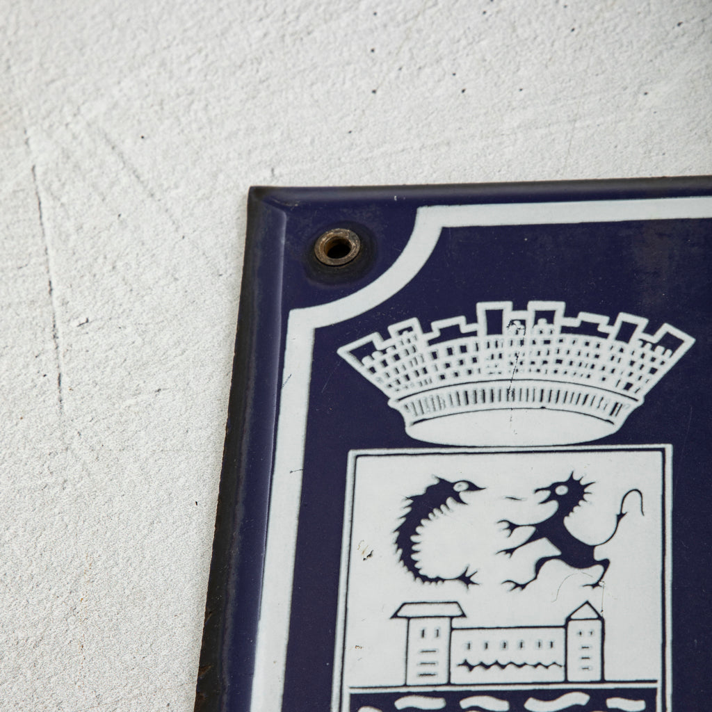 Bombe enameled plaque, Salle De Bains (Bathroom). 2.5" H X 4" W