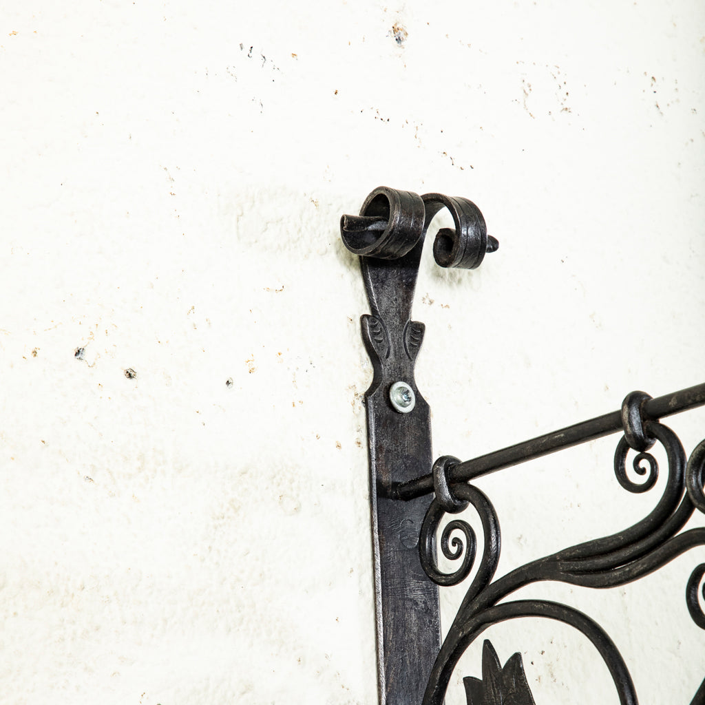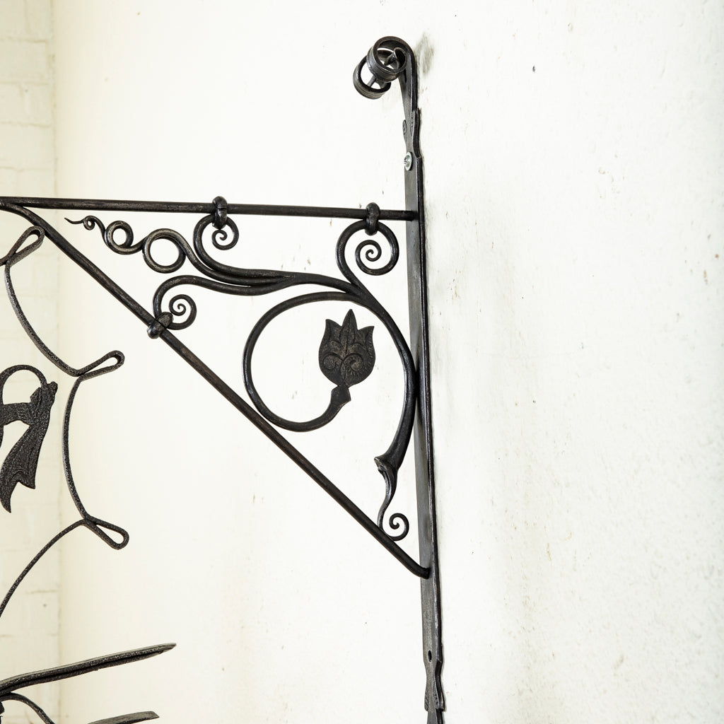Hand forged iron sign with bracket, c. 1890. Originally hung outside a lady's dress shop. 19" H X 3" W X 19.5" D
